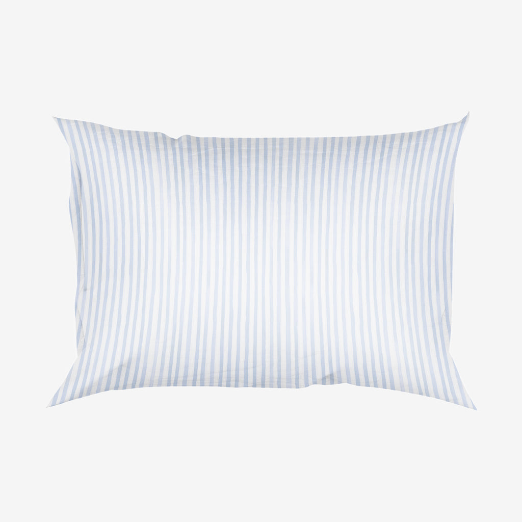 Our Simple Stripe print is anything but. Take a deep breath and get lost in the subtle variations of color and texture in these hand-painted, cerulean lines. An instant staple for a calm and peaceful bedroom or nursery.
